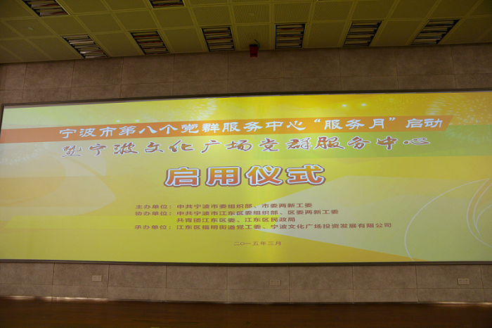 36,宁波文化广场党群服务中心启用仪式顺利开展。市委常委、组织部部长杨立平等有关单位领导,宁波开投集团总经理戴志勇,宁波开投集团副总经理、宁波文化广场投资发展有限公司董事长魏雪梅出席了活动。